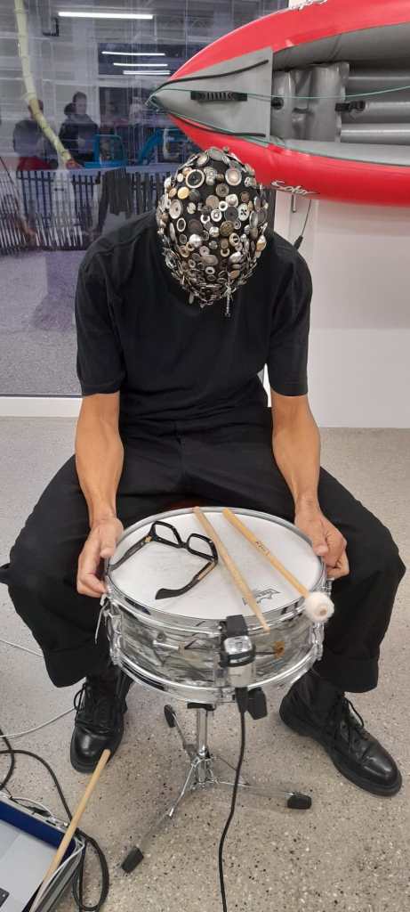 S est aussi performeur, il a commencé à YVERDON en faisant du smurf et du vélo, pour ensuite enchaîner avec la batterie et le théâtre, puis des performances baguettes et de la mise en son.